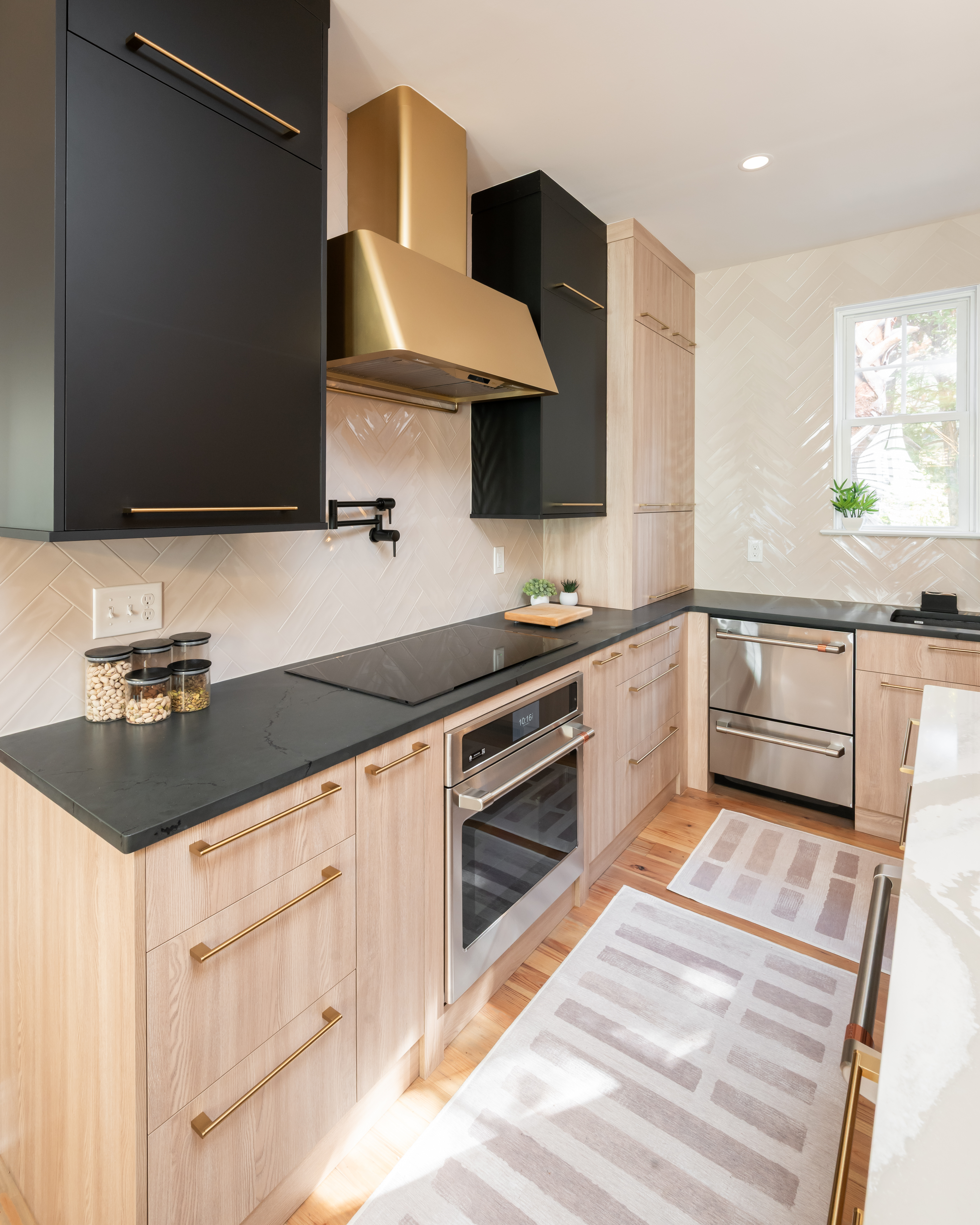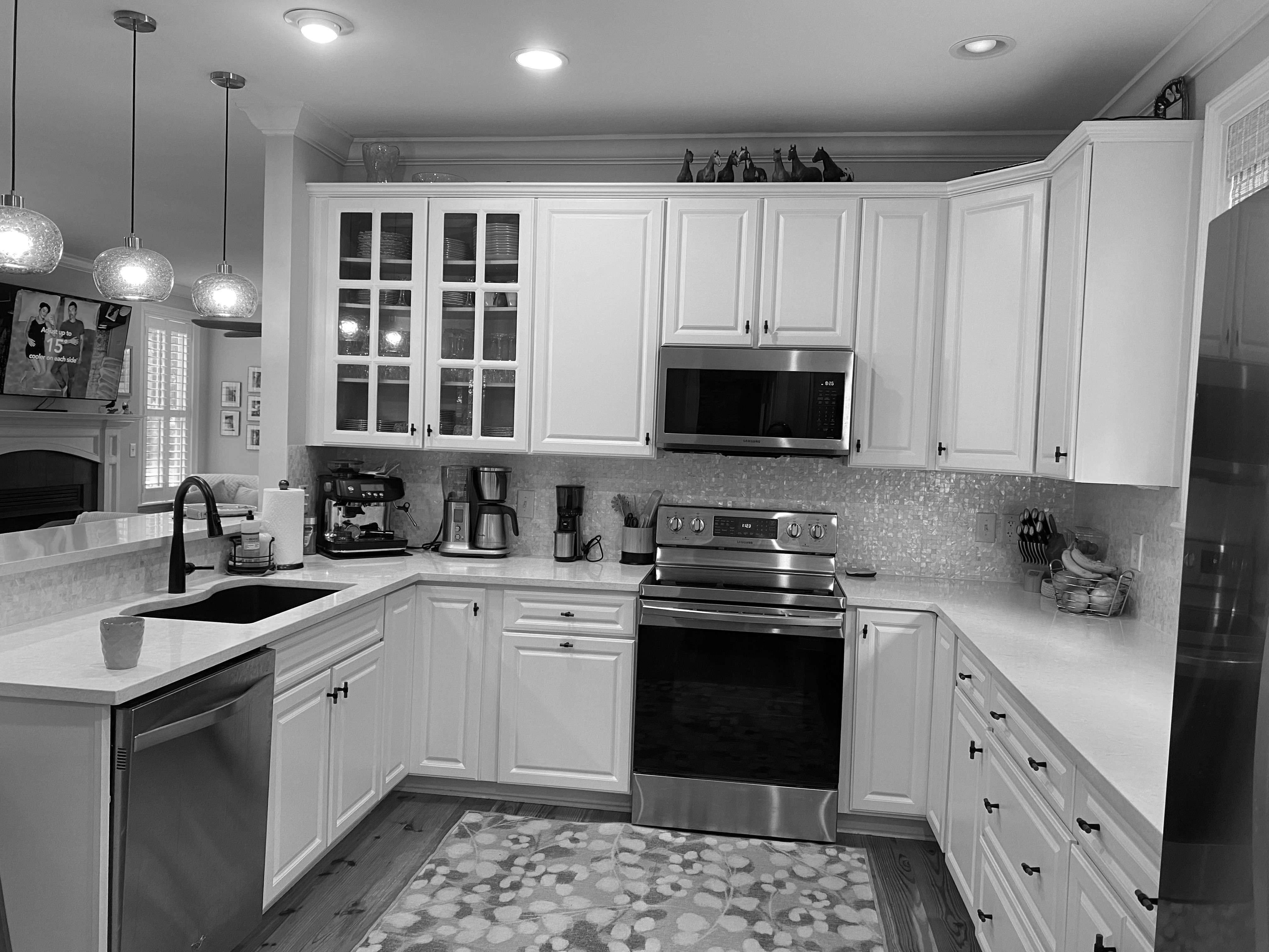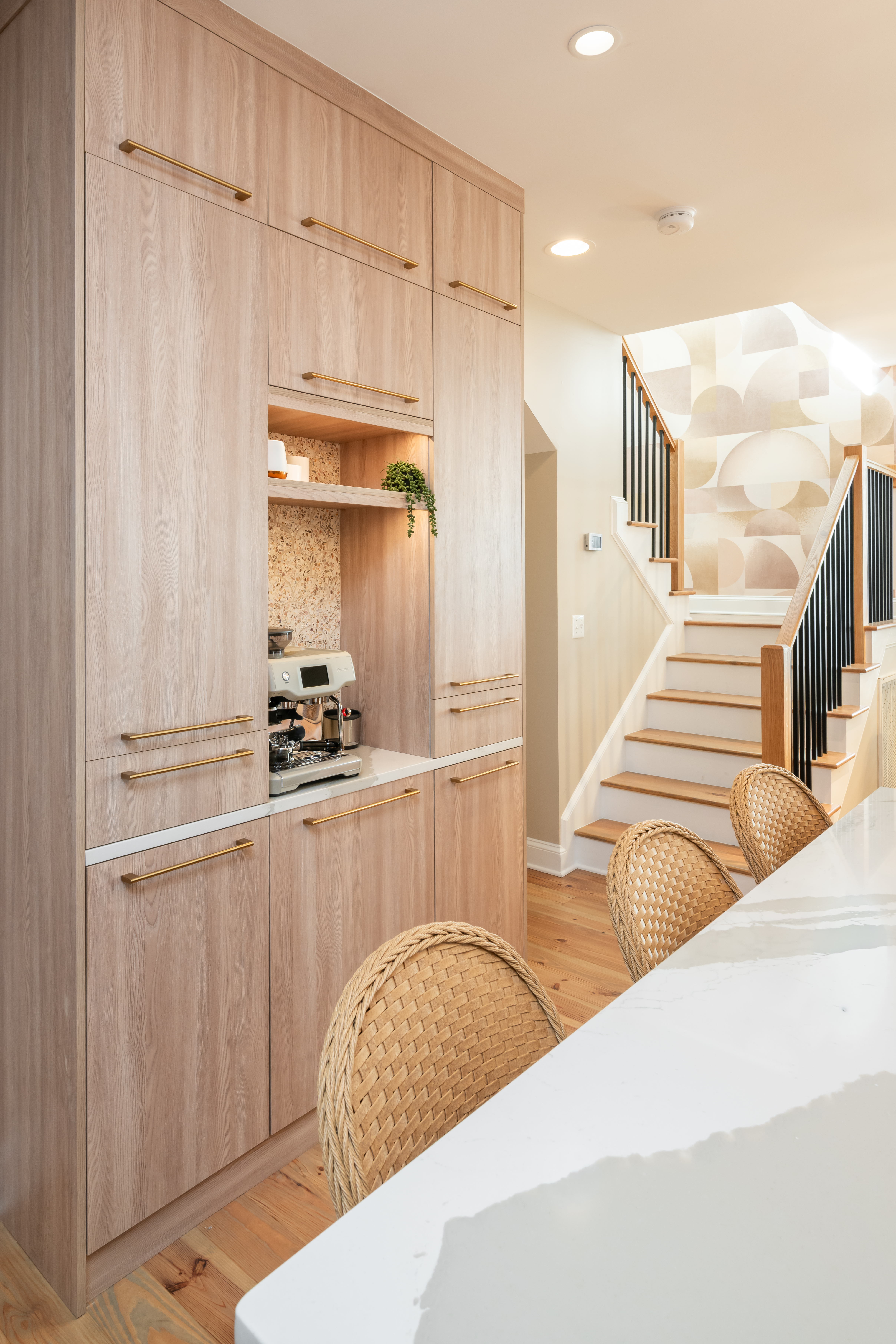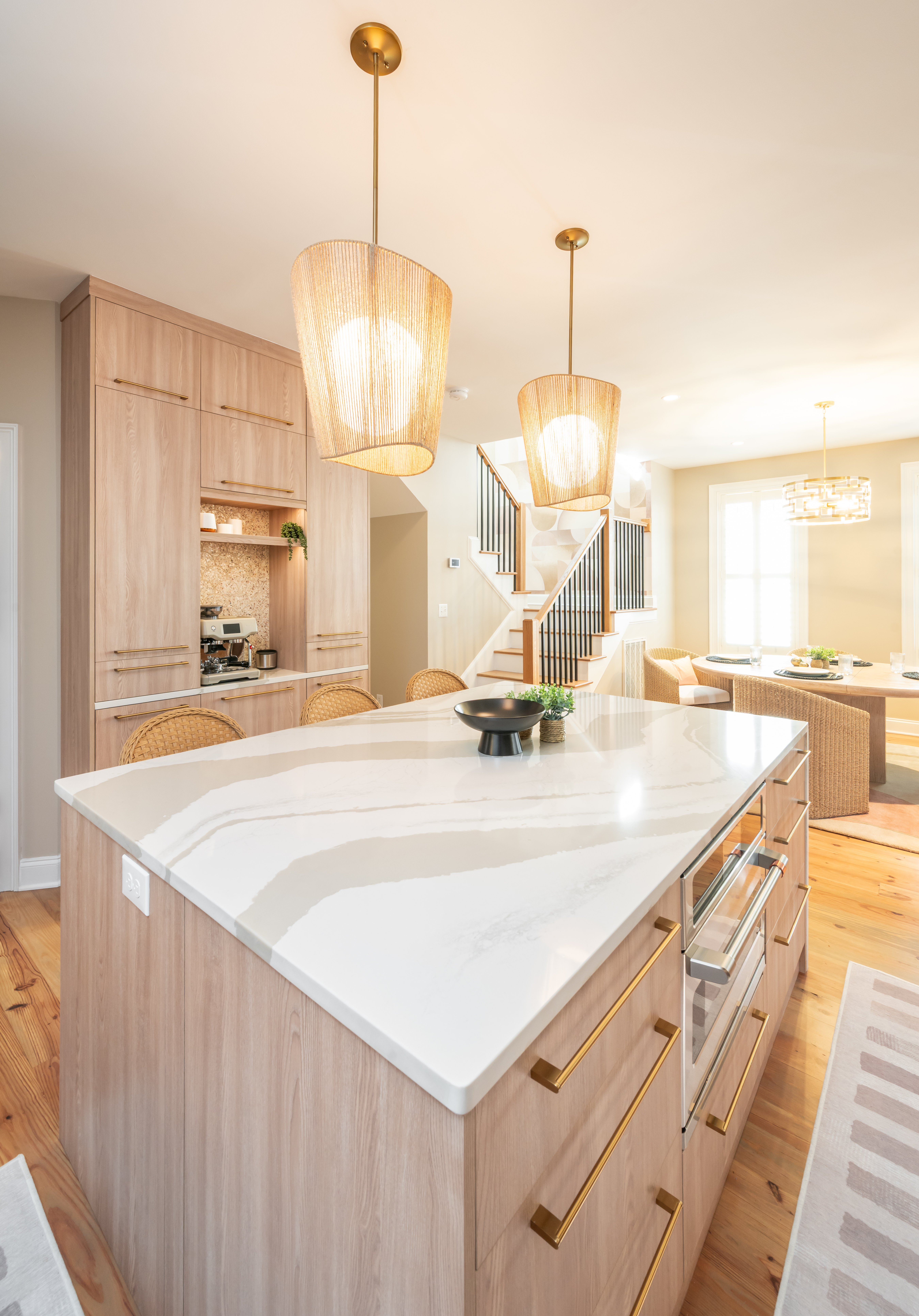 This home on Johns Island had many dated features and a kitchen that felt too closed off before the remodel. To open this space up, the small peninsula island was taken down and replaced with a large waterfall island in Cambria countertops. We took the new Fabuwood cabinetry all the way to the ceiling to give a more elevated look and finished them off with gold hardware. The before and after pictures demonstrate just how easy it is to take what was once dated and turn it into the modern kitchen of your dreams.